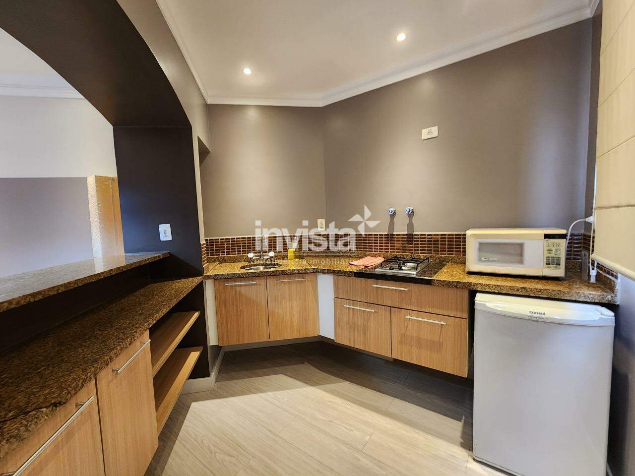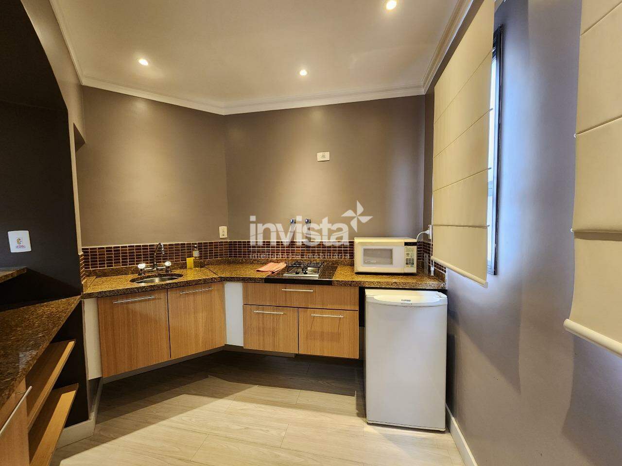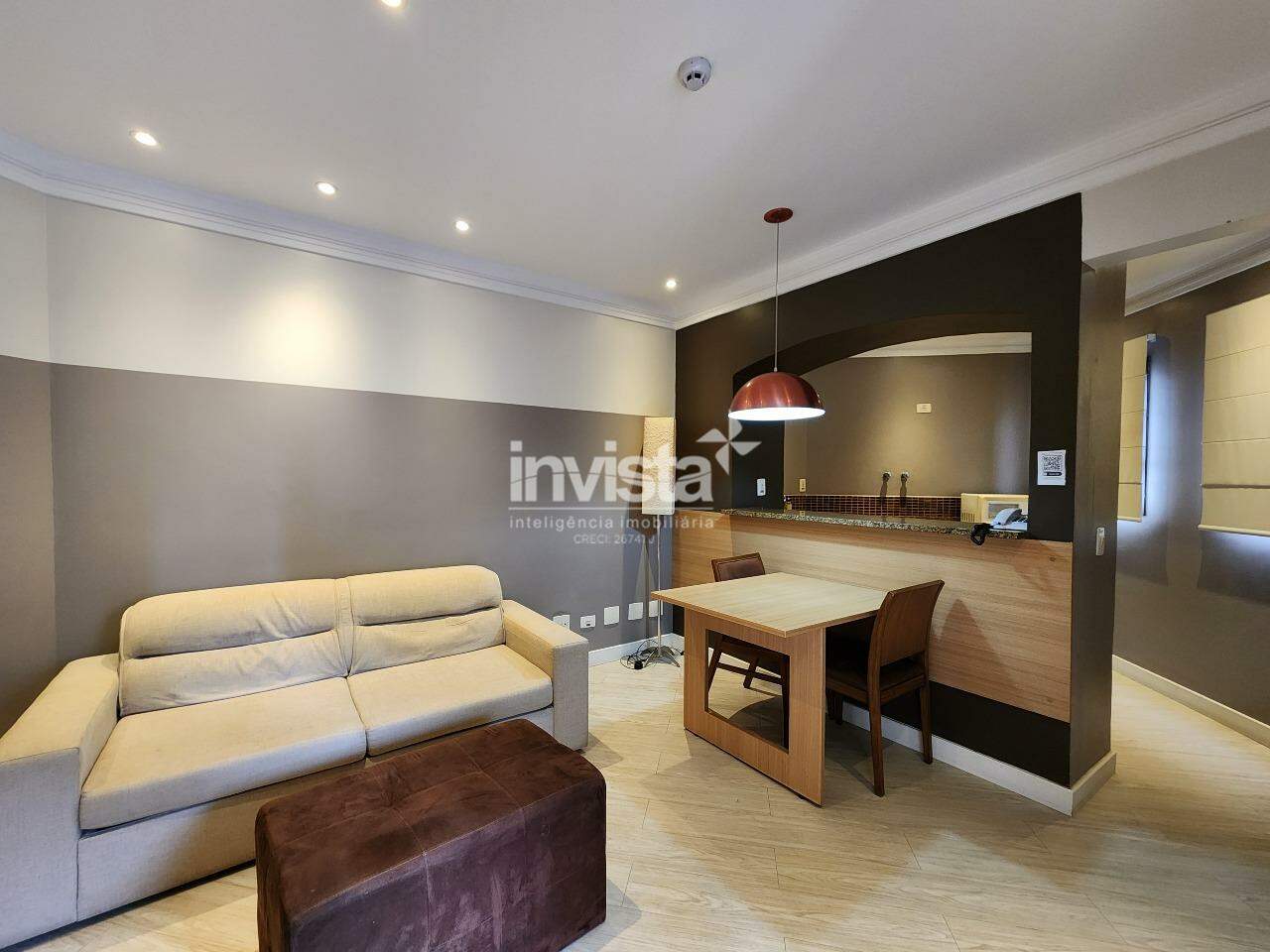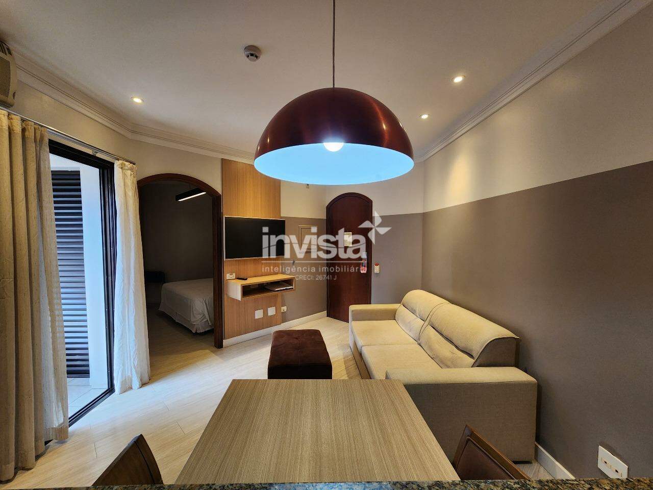 Um flat de 1 dormitório, sala 2 ambientes, cozinha americana, banheiro e uma varanda que integra sala e quarto. Já possui móveis planejados em todos os cômodo!