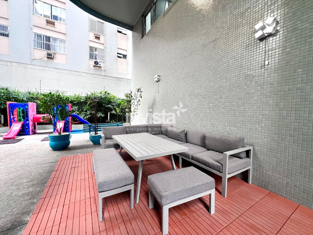 Prédio conta com salão de festas, academia, sauna, brinquedoteca e um pequeno campo de futebol infantil.