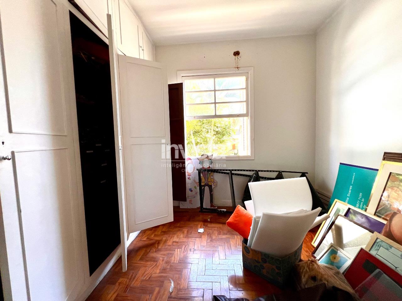 Sala ampla com dois ambientes e janelões que garantem iluminação natural e ótima ventilação, cozinha espaçosa, banheiro no térreo, depósito sob a escada e, no pavimento superior, mais um banheiro e três dormitórios generosos.