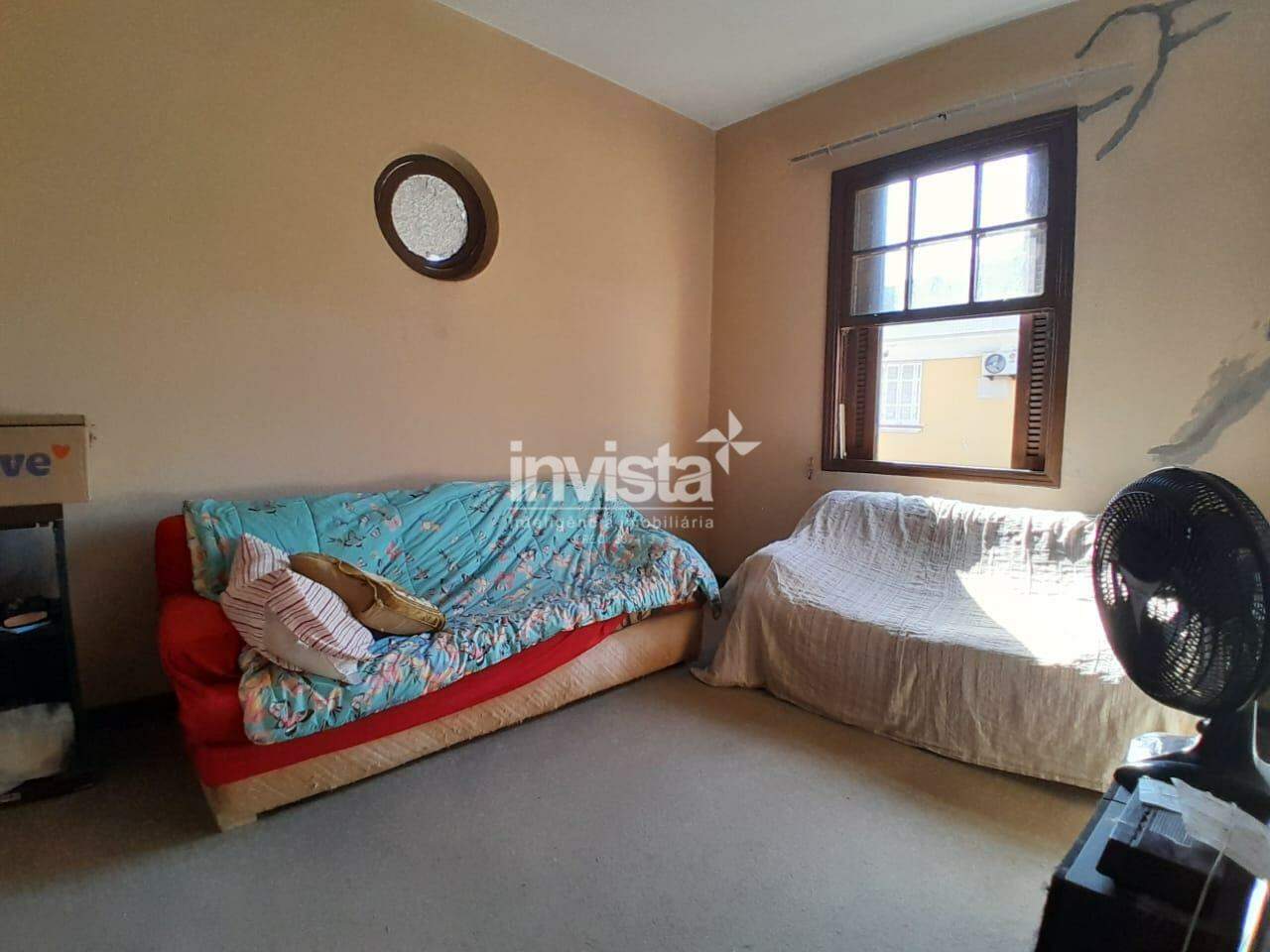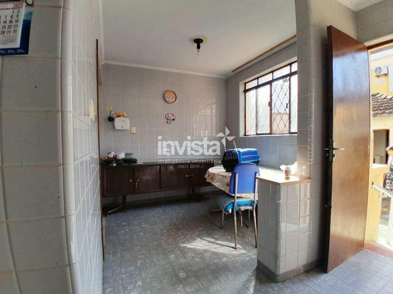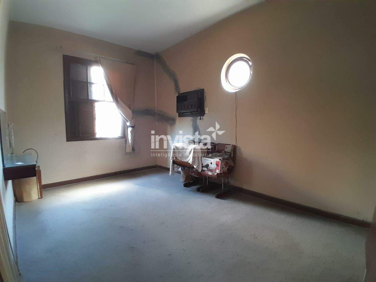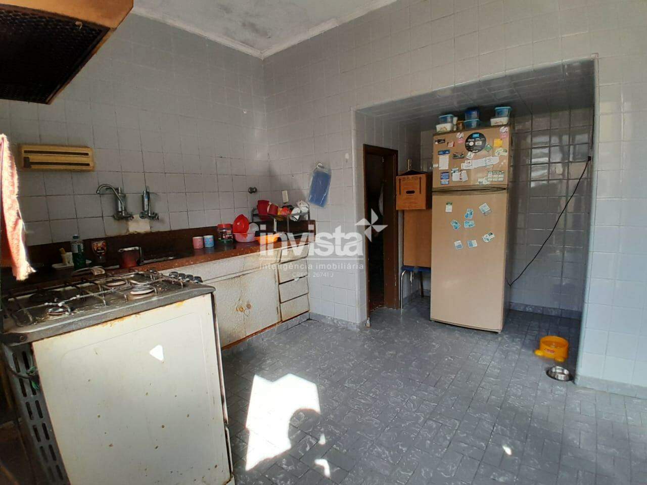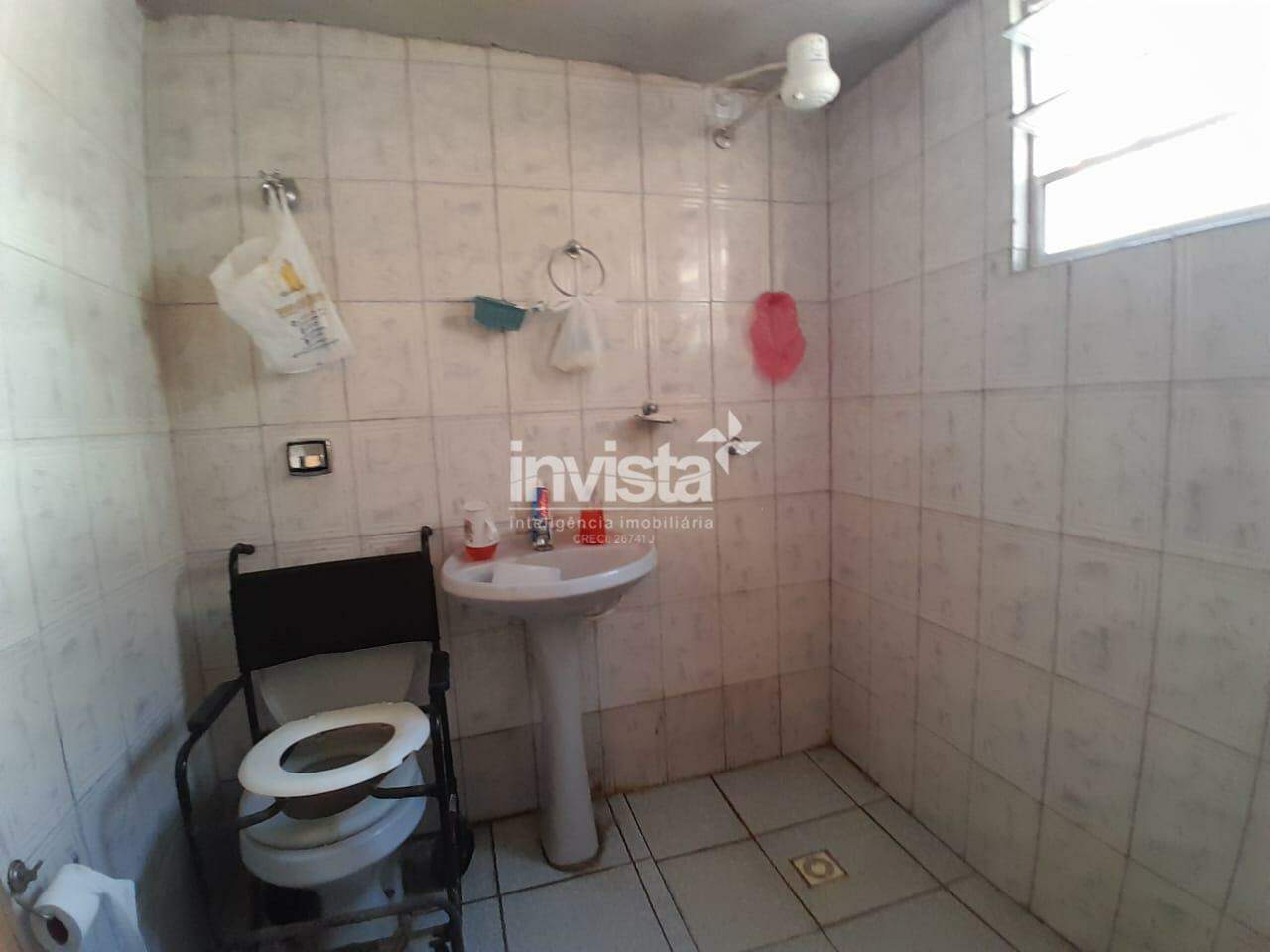 Casa com sala, cozinha, 3 quartos e banheiro social grande.