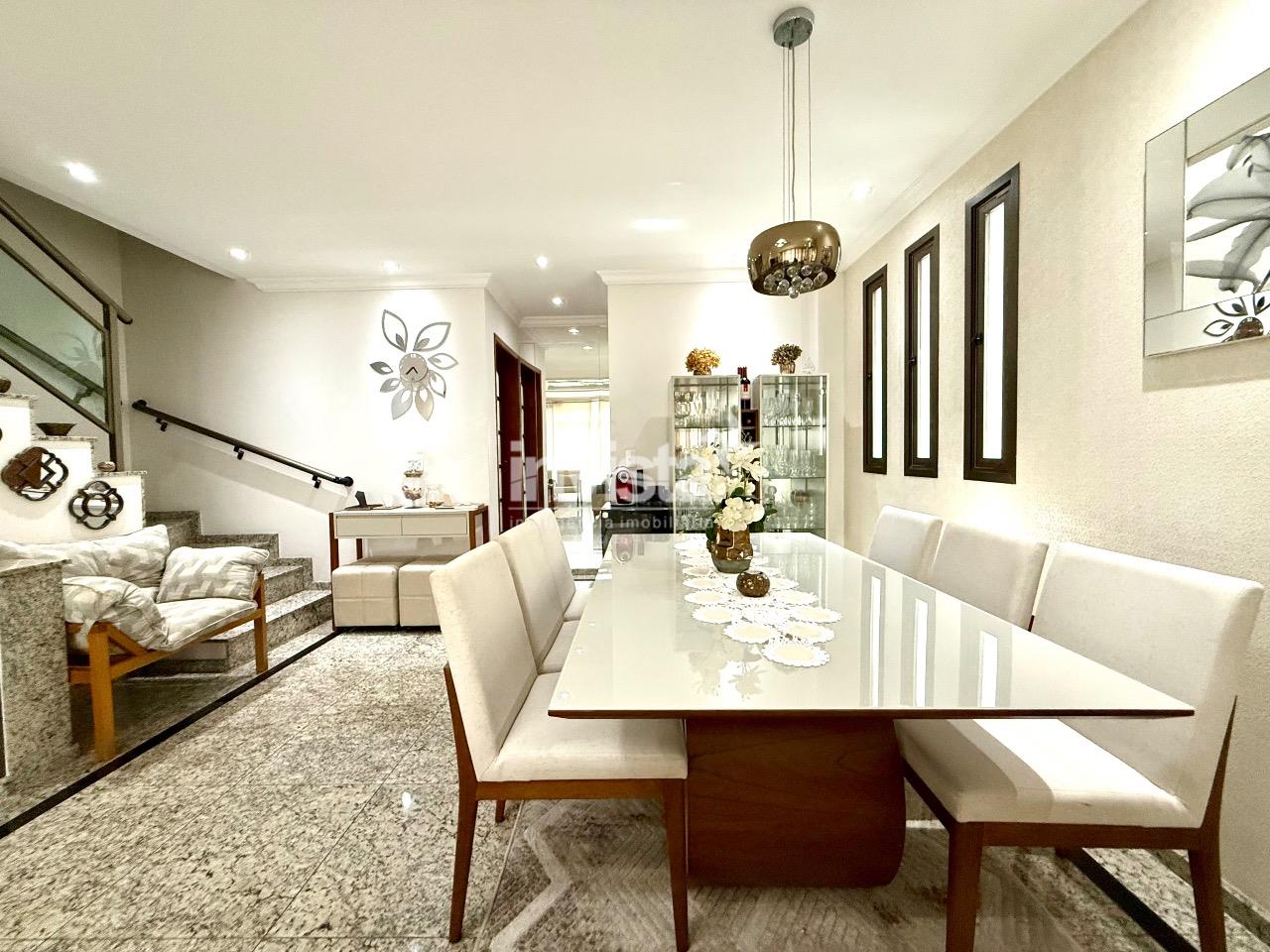 No segundo pavimento, uma sala ampla para dois ambientes proporciona aconchego e sofisticação, com integração à cozinha e a um lavabo. Já no piso superior, estão os três dormitórios, incluindo uma suíte espaçosa e um banheiro social.